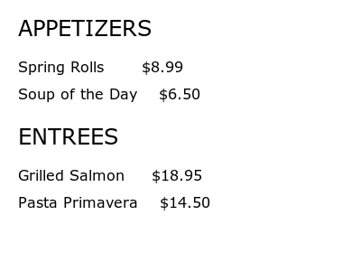 Menu Photos